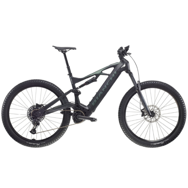 Bianchi E‑Vertic FX‑Type- Bianchis fullfjädrade el‑mountainbike designad för aggressiva klättringar och spännande utförskörningar. Med sina rejäla dämpningar är den ett mångsidigt val för mixed‑terrain, teknikstigar och även urban pendling.