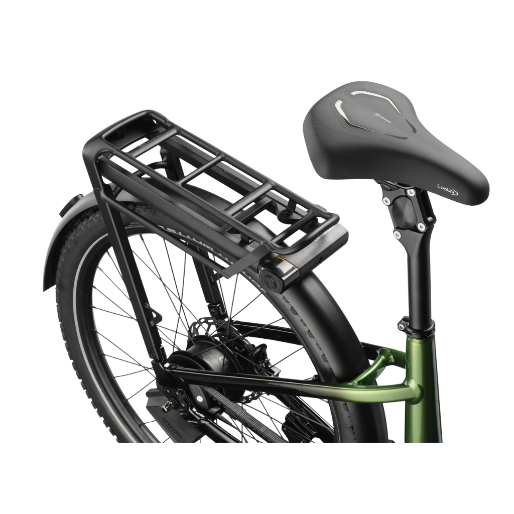 Övrig informationCompatible with Bosch Connect Module (BCM). RackLock rear rack (27kg, Racktime SnapIt 2.0 & child seat compatible), with integrated extra-large Trelock U-Lock (key-matched with battery lock), OutFront Racktime front rack,