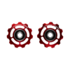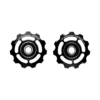 There are choices available to best meet your needs. Machined aluminum pulleys with our Standard Bearings, which consist of our stock CeramicSpeed Balls installed in our hardened-steel races is the first option. These test better than anything else on the market. Machined titanium pulleys with our Standard Bearings is the second. Machined titanium pulleys with our stock CeramicSpeed Balls installed in coated, hardened-steel races is the third option.These are compatible with all 11-speed Shimano derailleurs