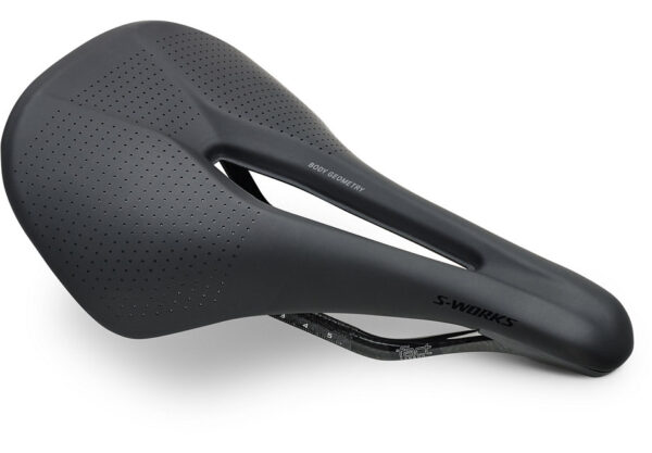 Patented Body Geometry design is lab-tested for both men and women to ensure blood flow to sensitive arteries. Stiff FACT carbon fiber shell is tuned for support and ride compliance. Super-light EVA padding for comfort and support on longer rides. Ultra-light, strong, and oversized FACT carbon rails. Level 2 padding: Medium density foam for bike feel with additional cushioning. SWAT™-compatible mounts molded into the saddle base allow for sleek and integrated storage solutions. Size 143mm / Weight: 141g. Size 155mm / Weight: 145g. NOTE: Oversized 7x9mm carbon rails are not compatible with seatposts equipped with side-load clamp mechanisms for 7mm round rails.