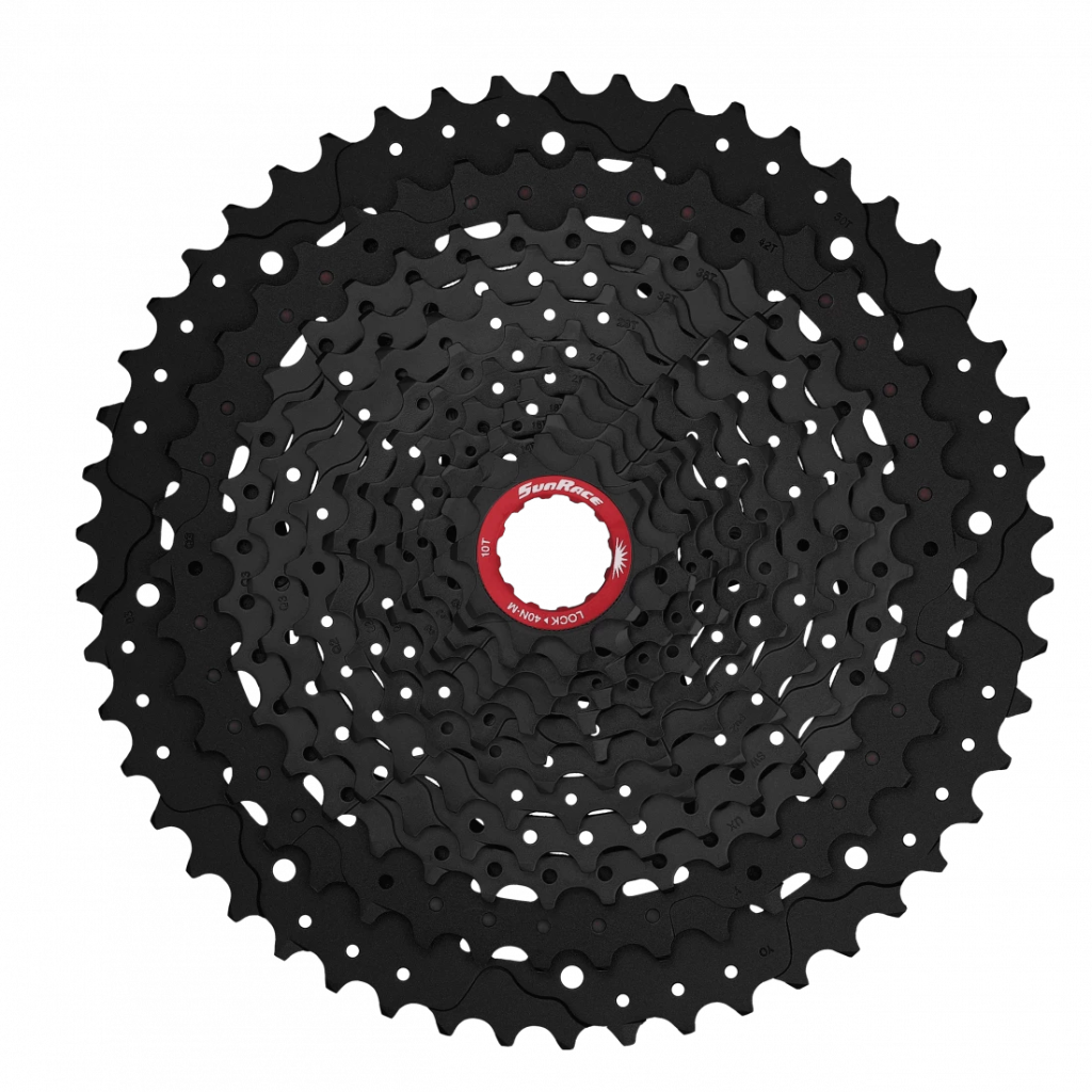 Den högklassiga Sunrace Àr en 12-delad kvalitetskassett som tack vare Fluid Drive Plus levererar smidiga vÀxlingar och extremt pÄlitlig funktion över hela sitt imponerande breda register. En föredömligt lÀtt men samtidigt tÄlig kassett dÀr 10 av dreven Àr tillverkade i StÄl (Hi-Tensile) och tvÄ Àr tillverkade i Aluminium (A7075), spindeln Àr tillverkad i Aluminium, lÄsringen Àr tillverkad av StÄl och spacers av Polymer. Kassetten Àr dessutom utrustad med Sram XDŸ freehub body, vilket i praktiken innebÀr att den Àr fullt kompatibel med de senaste och bÀsta drivlinorna frÄn SRAM.